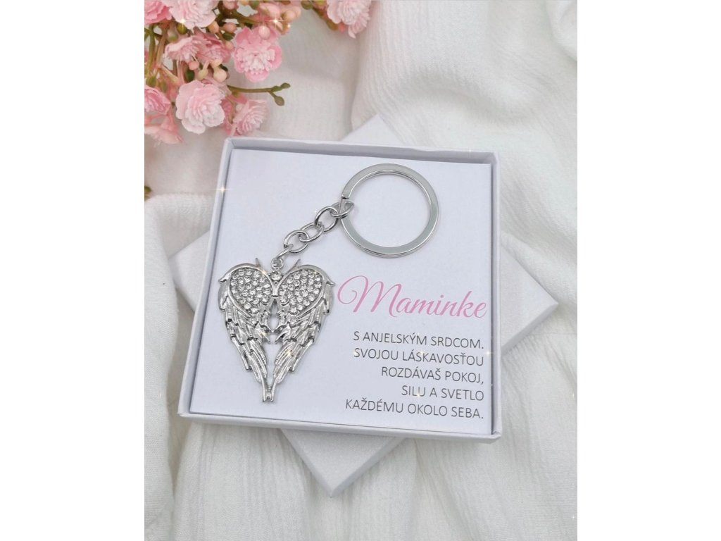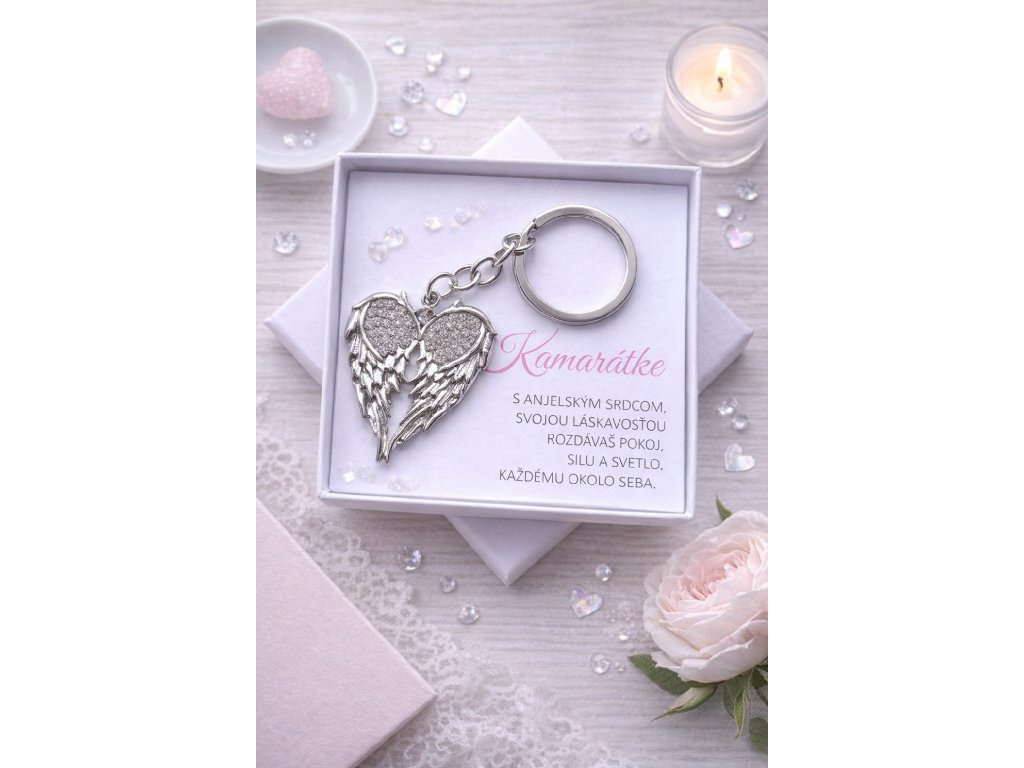 Jemná kľúčenka s motívom anjelského srdca, symbolom lásky, ochrany a pokoja. Je malým talizmanom, ktorý môže sprevádzať každý deň a pripomínať blízkosť, starostlivosť a dobré myšlienky.
