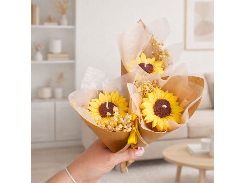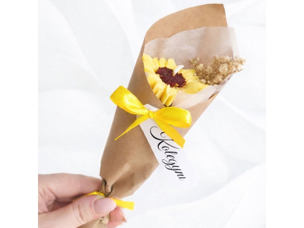 Žiarivá kvetinka, ktorá poteší zrak aj zmysly. Obsahuje sójovú sviečku v tvare slnečnice, vyrobenú z kvalitného sójového vosku, s jemnou vôňou exotického ovocia a žltou farbou, ktorá symbolizuje lásku, šťastie a vďačnosť 💗