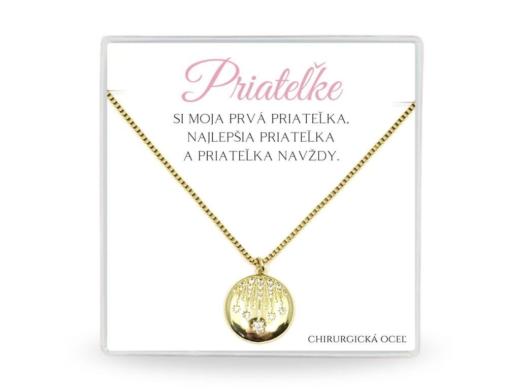 Nádherná zlatá oceľová retiazka zdobená jemným ligotavým príveskom je úžasným doplnkom, ktorý z každej ženy spraví trendovú bohyňu.