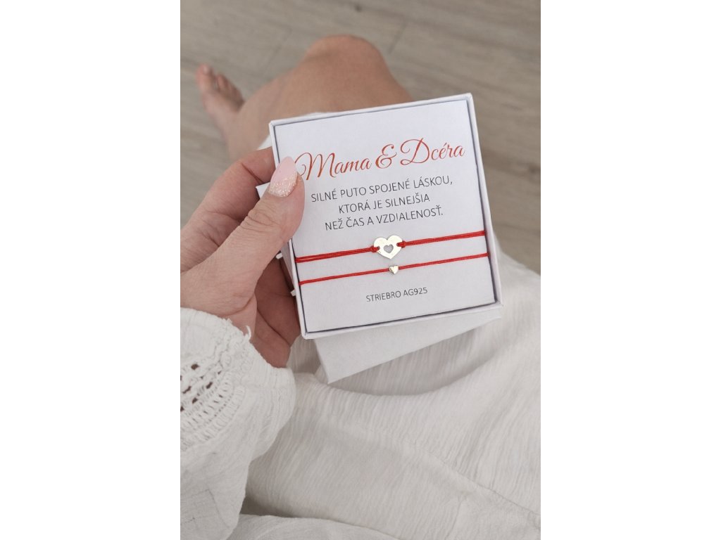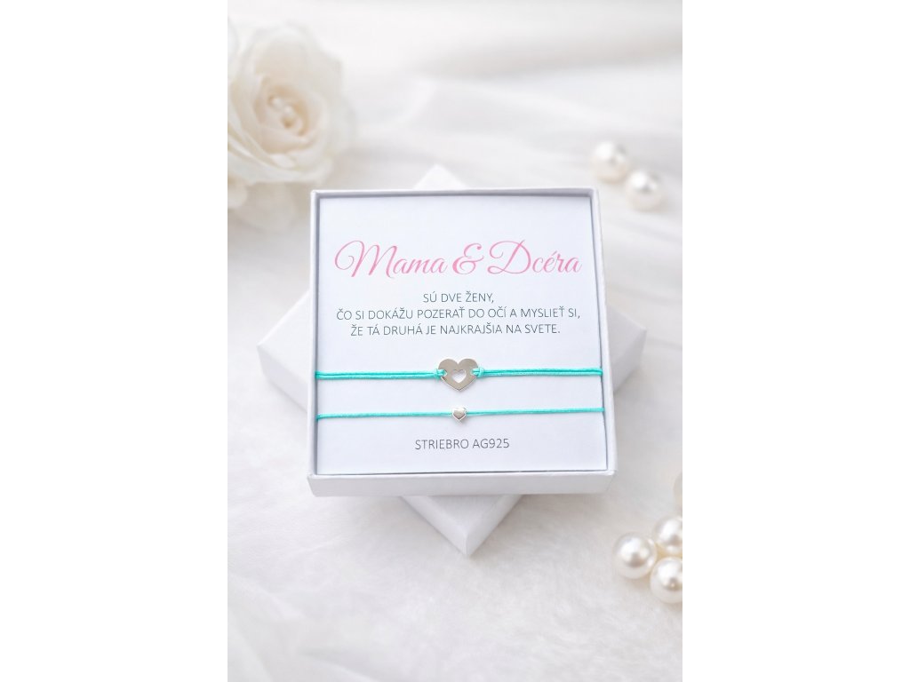 Každý náramok obsahuje jemné strieborné srdiečko, ktoré predstavuje nerozlučné puto medzi matkou a dcérou.