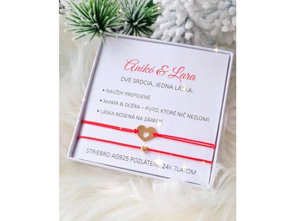Hovorí sa, že červená šnúrka symbolizuje šťastie, ochranu a pozitivitu, vďaka čomu je to extra špeciálny darček pre dvojice matka-dcéra.