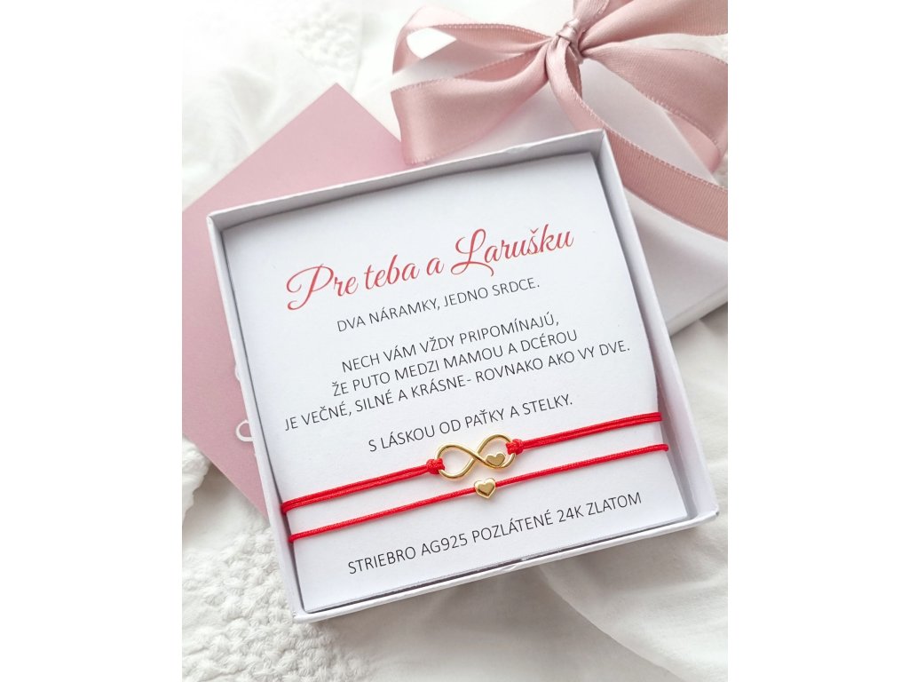 Hovorí sa, že červená šnúrka symbolizuje šťastie, ochranu a pozitivitu, vďaka čomu je to extra špeciálny darček pre dvojice matka-dcéra.