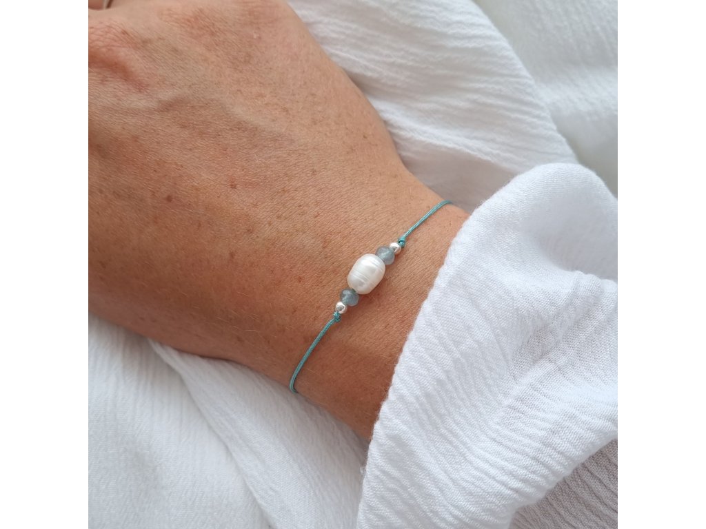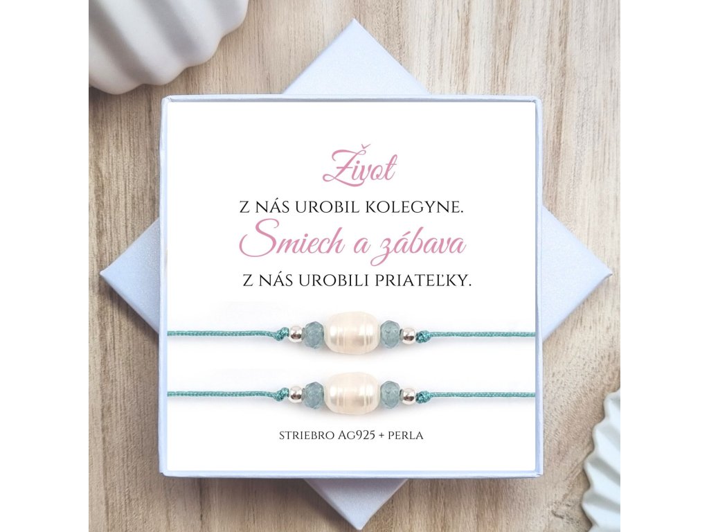 ✨ Náramky sú vyrobené z kvalitnej šnúrky, doplnené o pravú riečnu perličku a prírodný akvamarín – kameň pokoja, intuície a vnútornej rovnováhy.