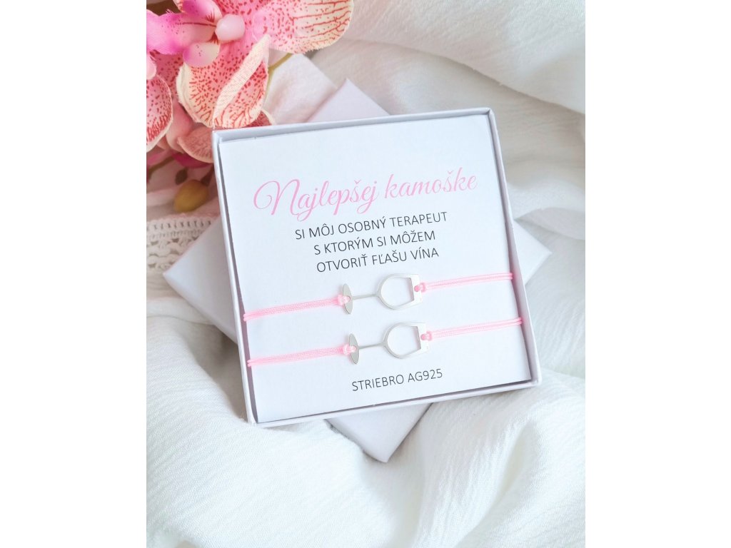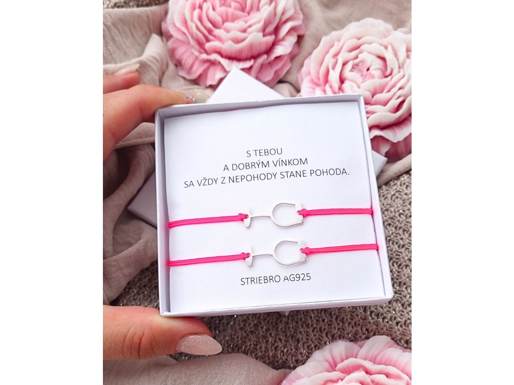 Tieto šnúrkové náramky so strieborným pohárikom vína sú dokonalým doplnkom pre vás a vašu priateľku.
