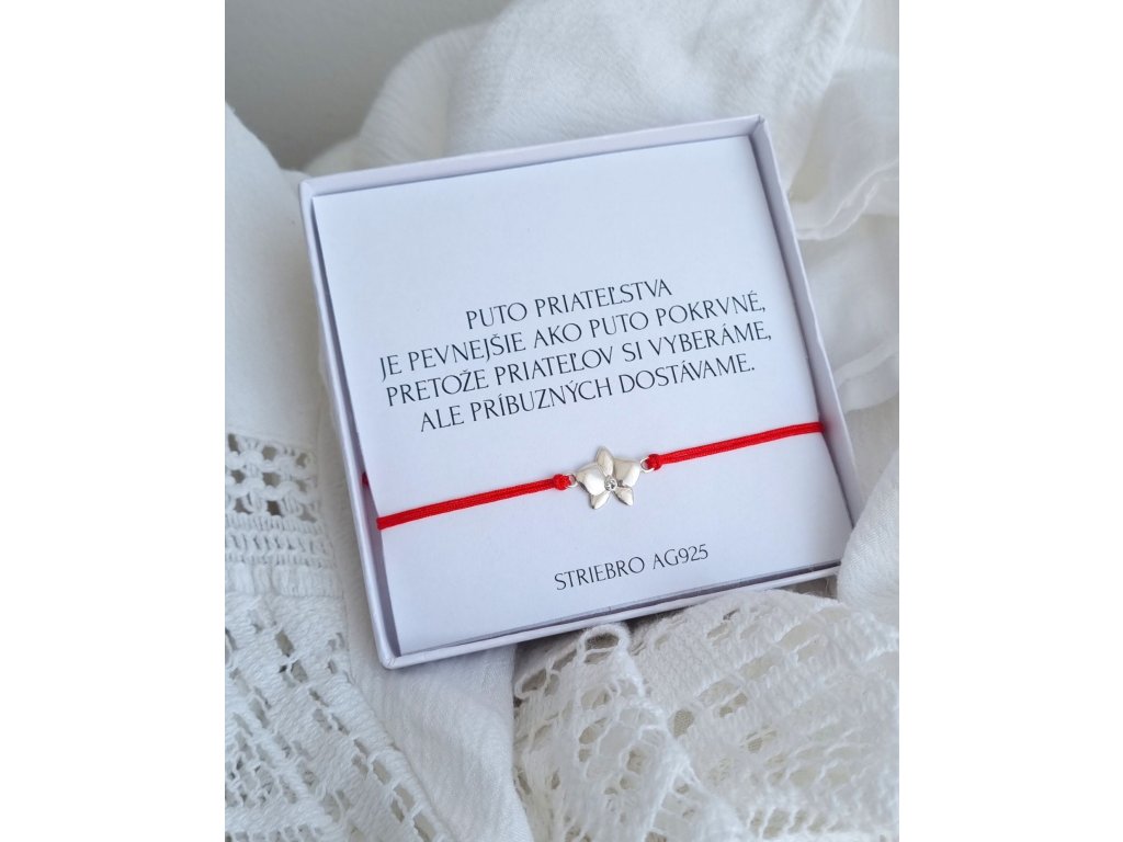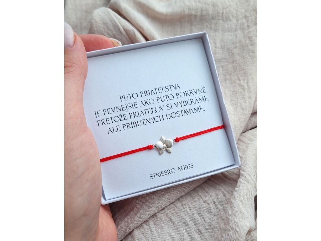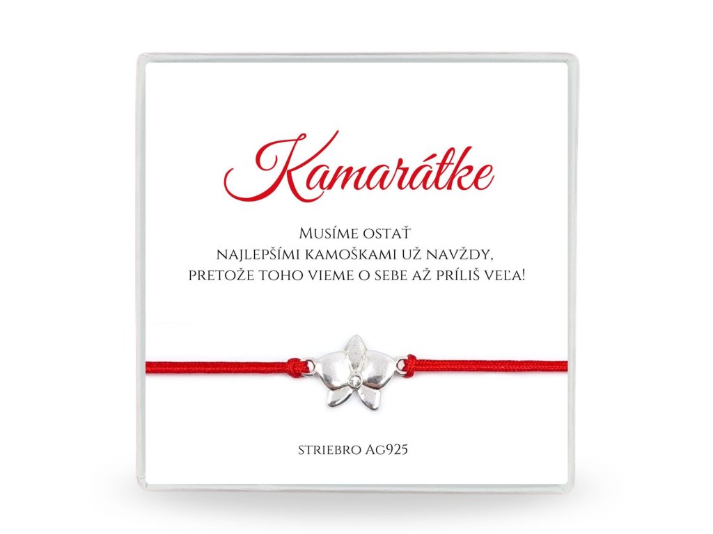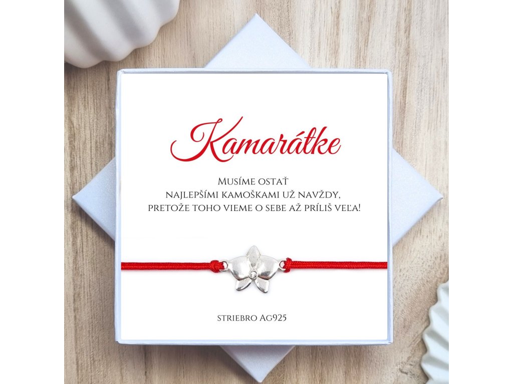 Strieborný šnúrkový náramok s príveskom orchidey v darčekovej krabičke s venovaním a citátom na želanie