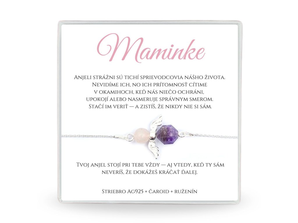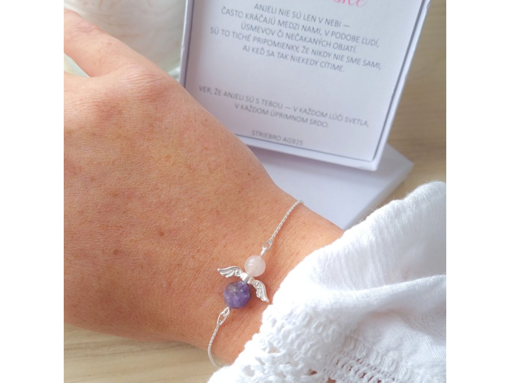 Strieborný náramok s anjelikom z čaroidu a ruženínu