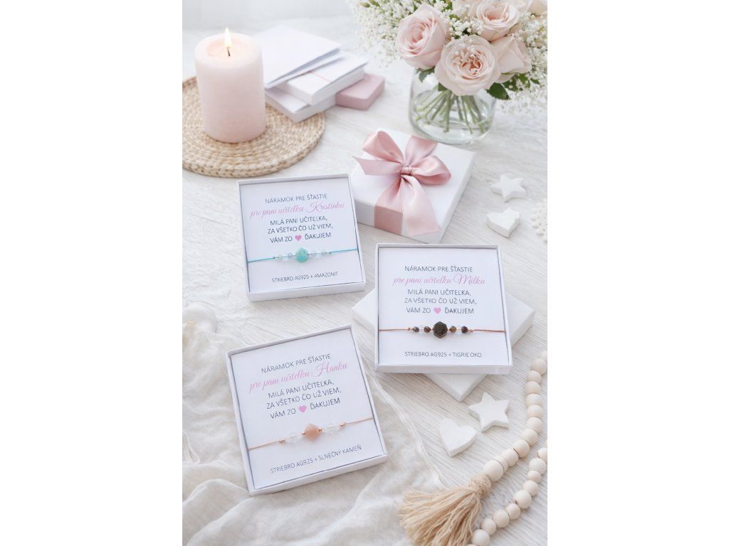 - vyrobený z pevnej nylonovej šnúrky, strieborných komponentov z pravého striebra Ag925 a prírodných minerálov