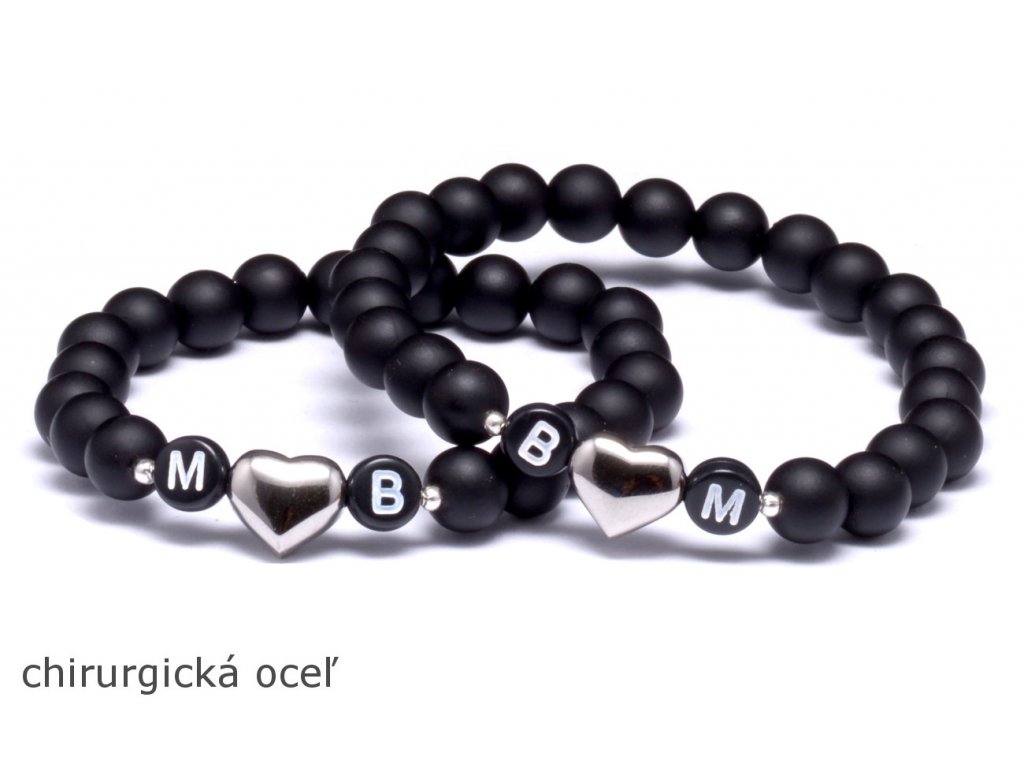Korálkové náramky s písmenkami a oceľovým srdiečkom