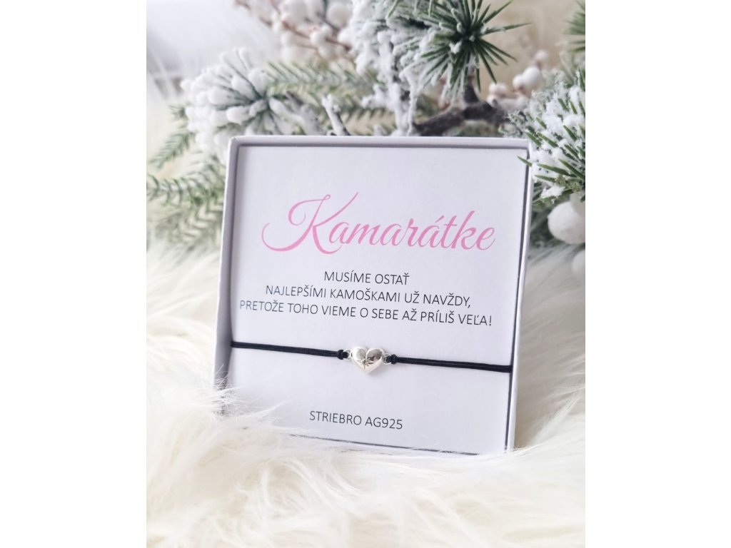 Strieborný šnúrkový náramok s príveskom srdce v darčekovej krabičke s venovaním a citátom na želanie