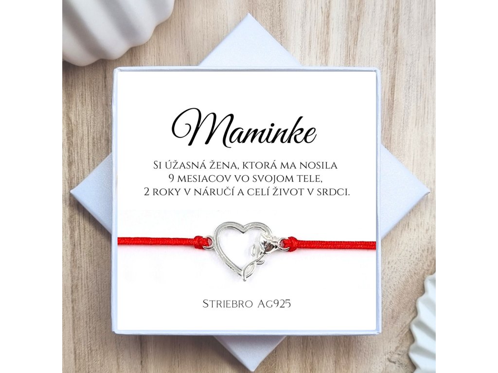 Strieborný náramok srdiečko s ružou