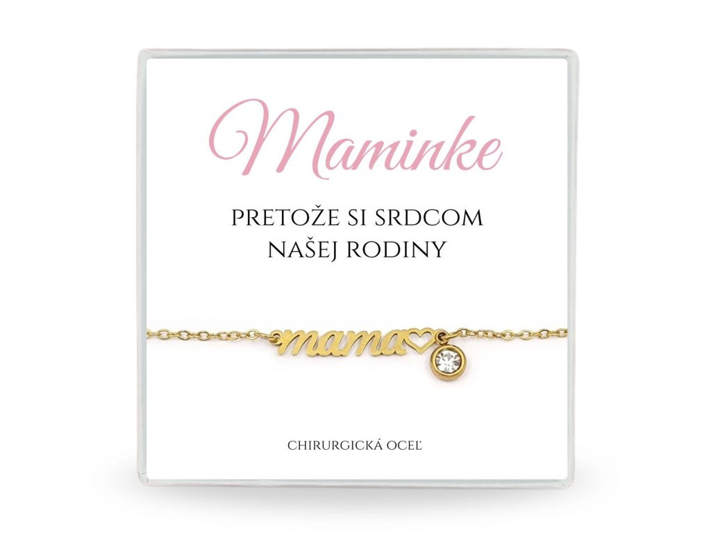 Elegantný oceľový náramok s nápisom mama♥ je krásnym symbolom lásky a vďaky. Jemný dizajn je doplnený ligotavým krištálikom, ktorý dodáva náramku decentný lesk a ženskosť.