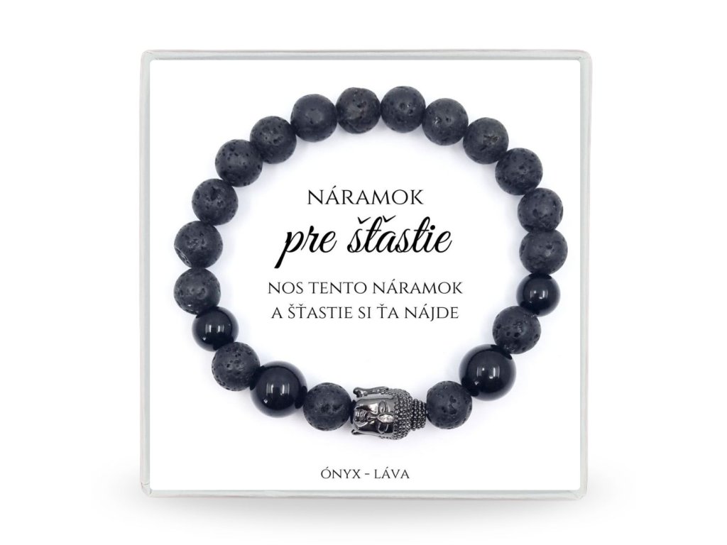 Pánsky náramok z lávy a ónyxu s hlavou Buddhu