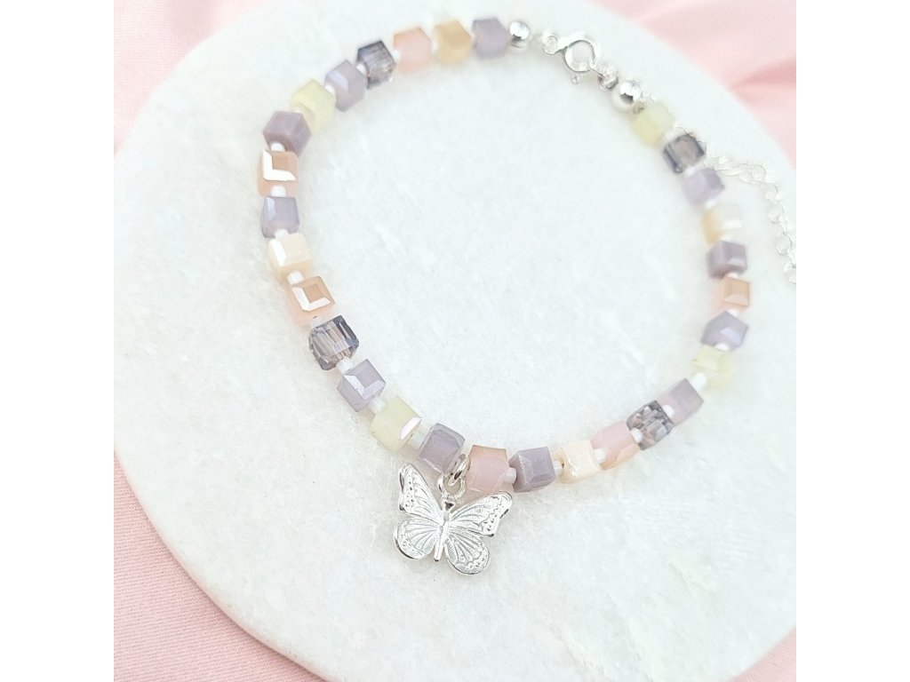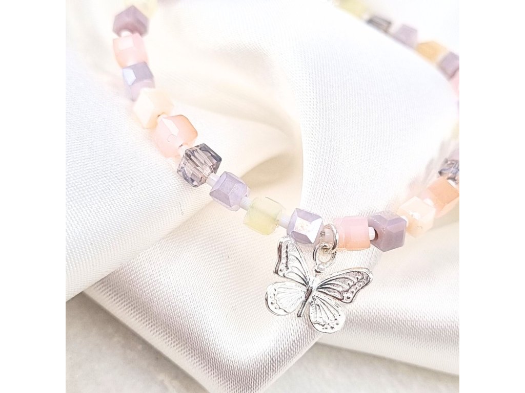 Náramok zdobia ligotavé korálky z českého skla a žiarivý prívesok. Prívesok a všetky kovové komponenty sú z pravého striebra takže náramok je antialergický.