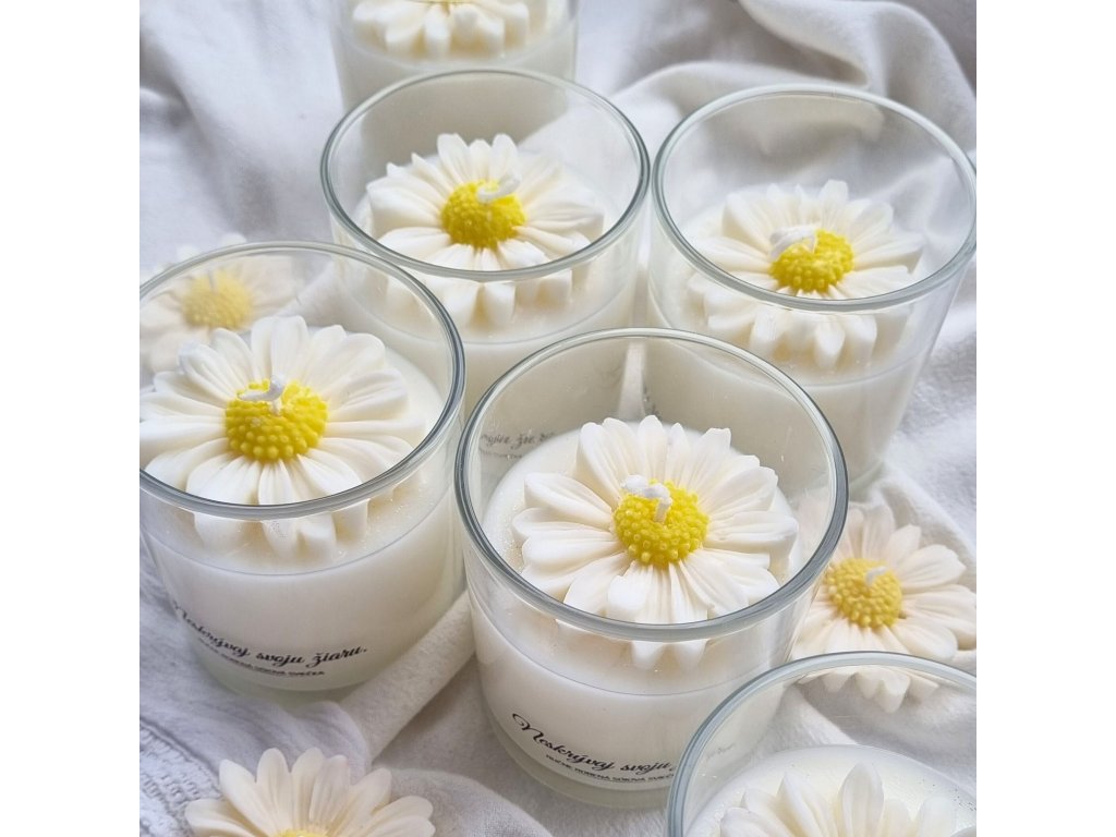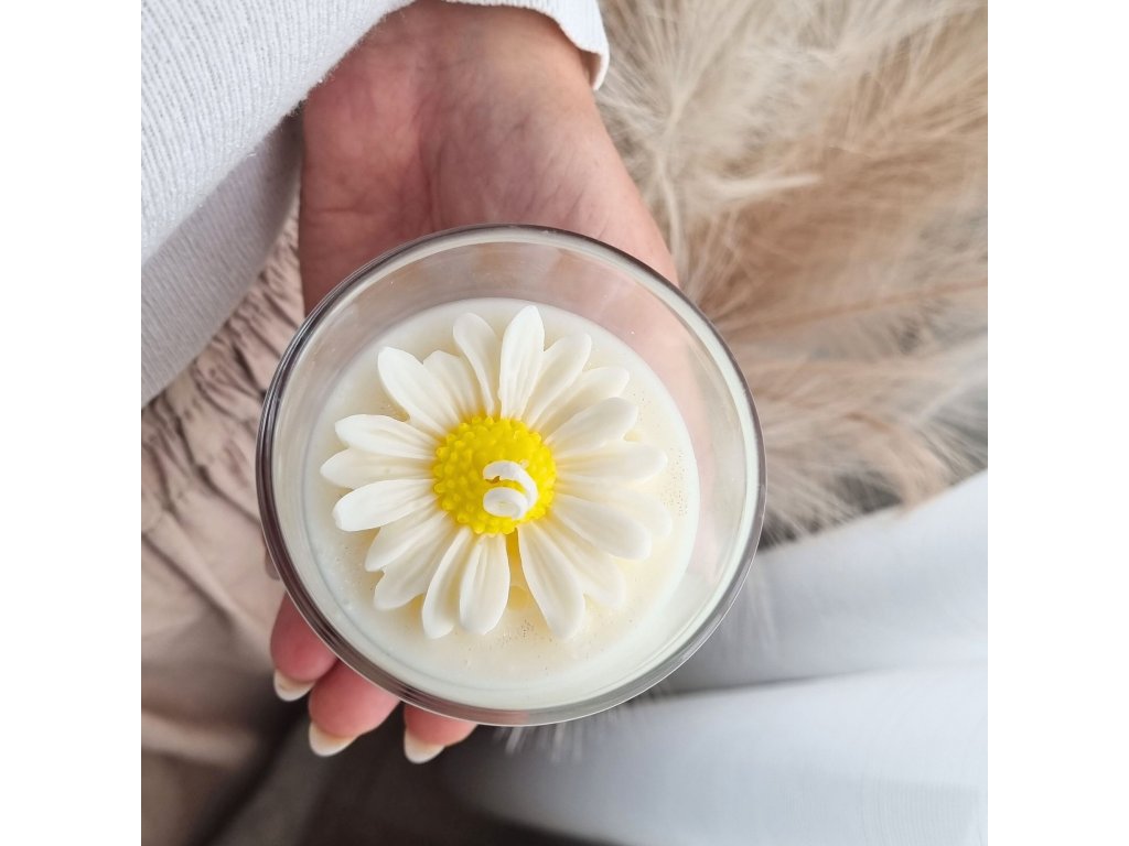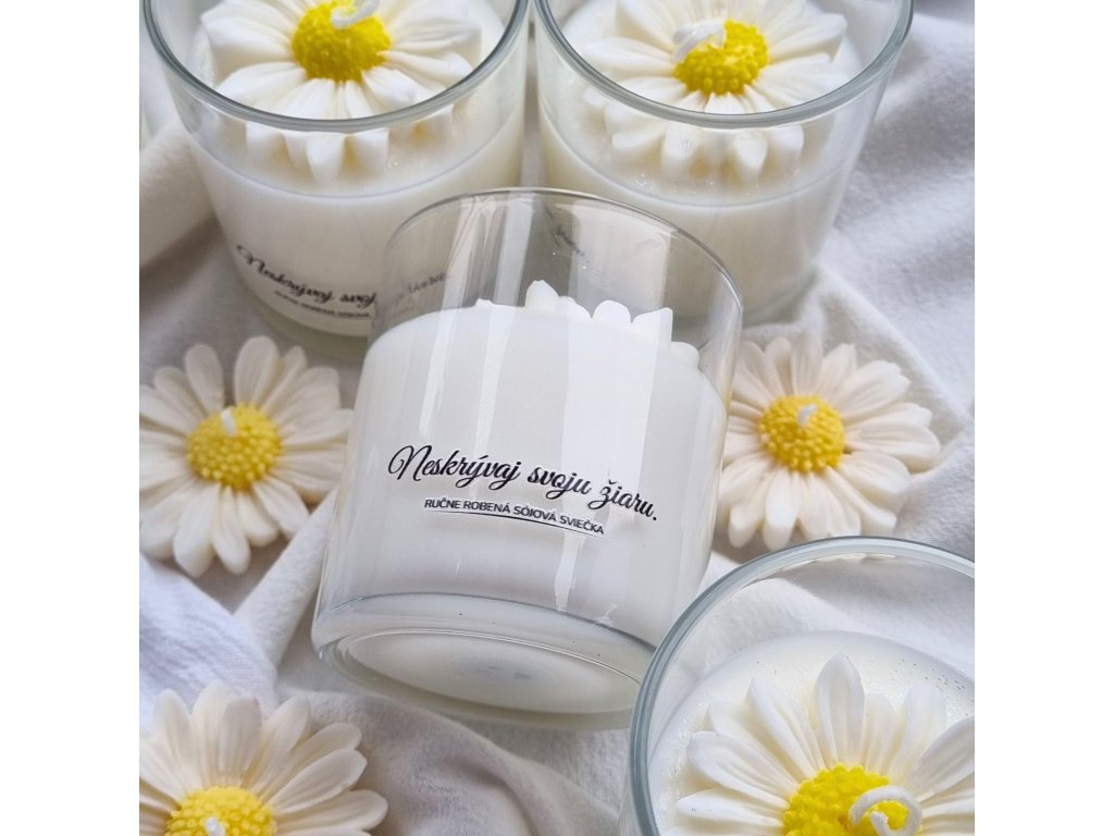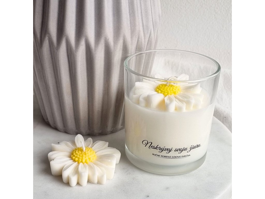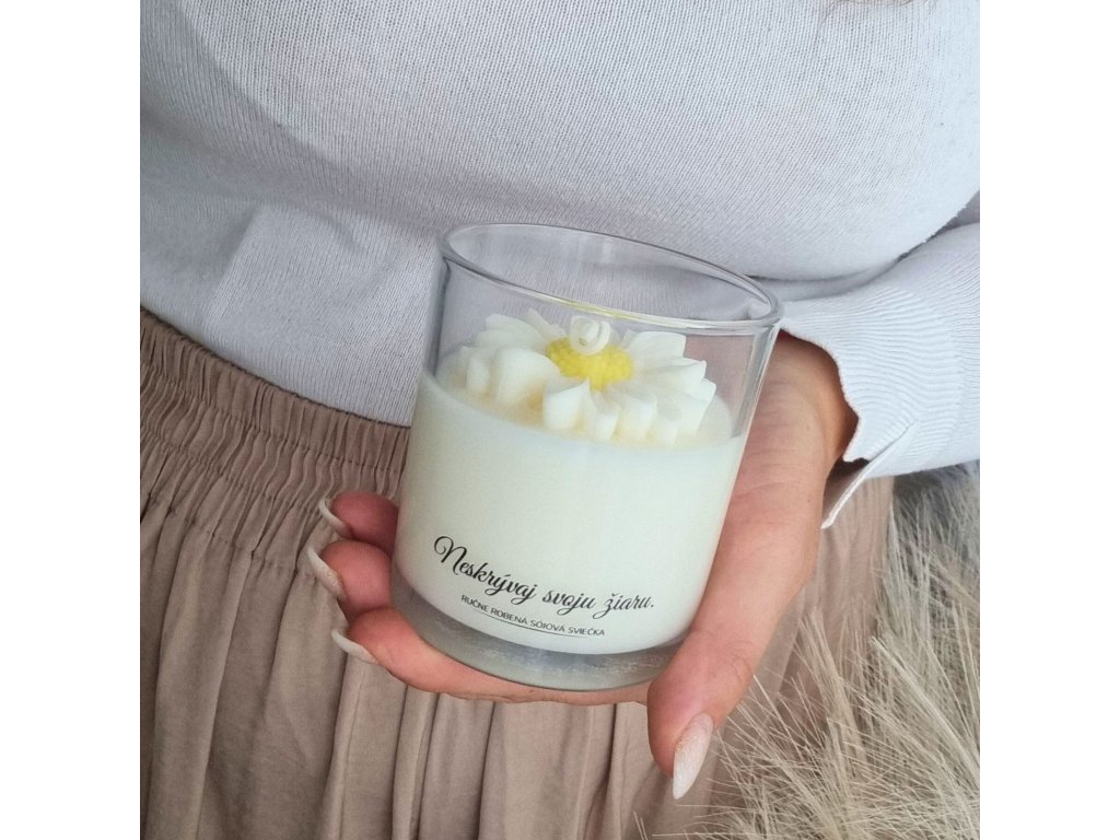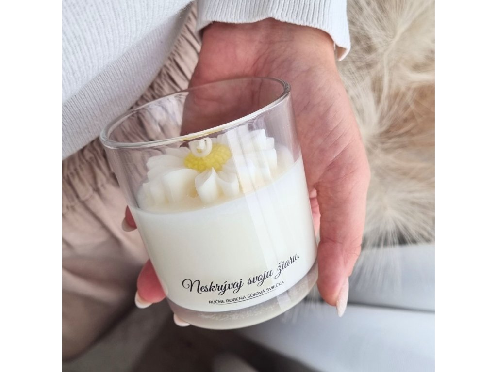 Ručne robená sójová sviečka v tvare kvetiny – voňavý darček v skle