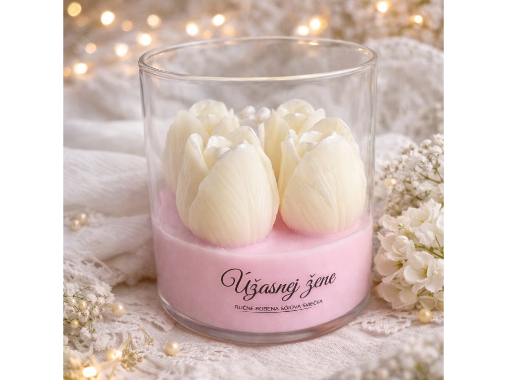 Sójová sviečka – Tulipány „Úžasnej žene“