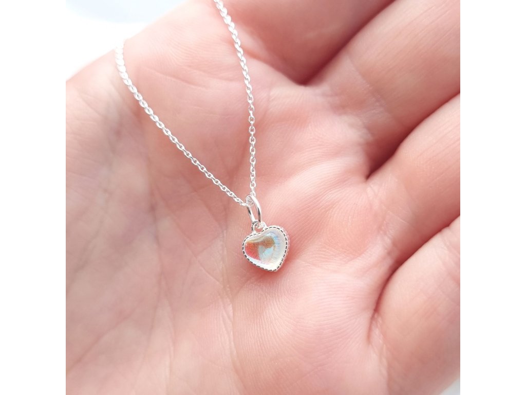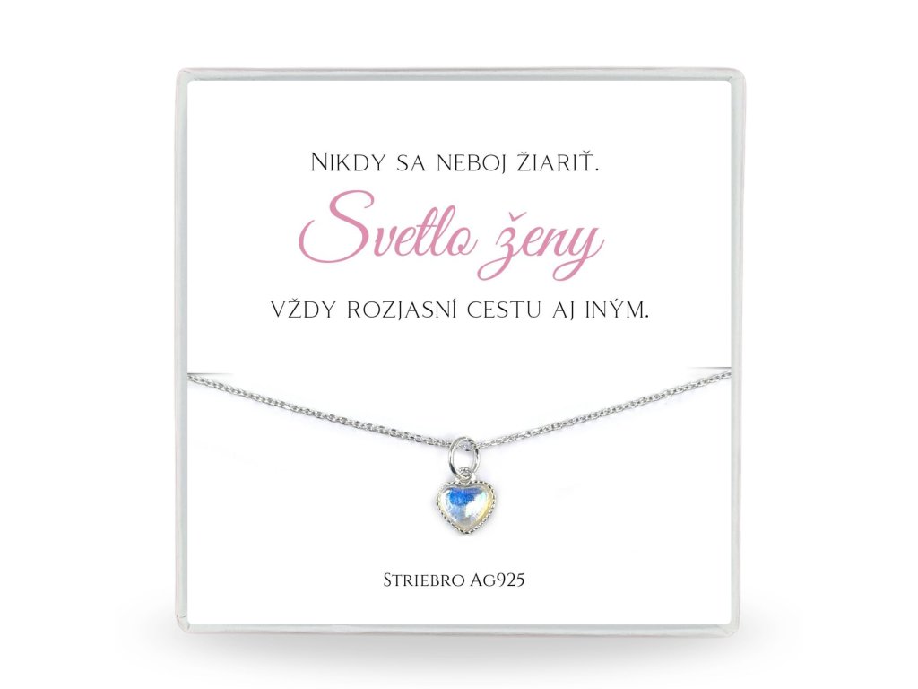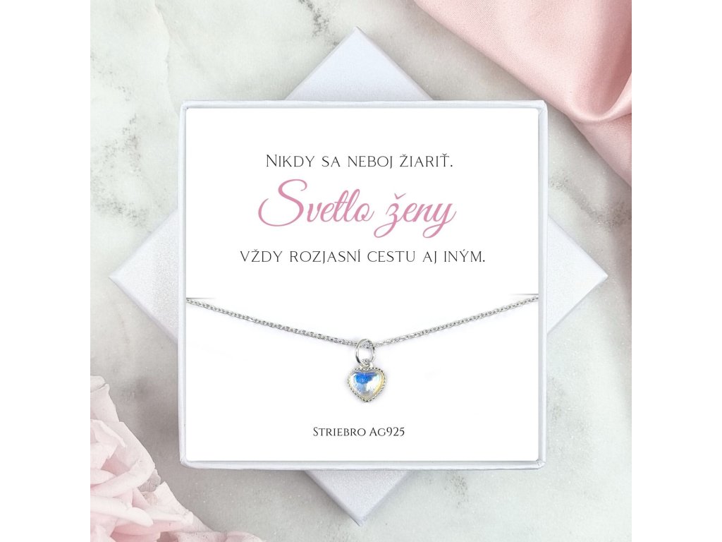 Oslávte silu a krásu každej ženy s touto elegantnou striebornou retiazkou s príveskom v tvare srdiečka Aura. Jemný krištálik odráža svetlo a vytvára jemnú hru farieb, ktorá symbolizuje vnútorné svetlo, energiu a jedinečnosť ženy.
