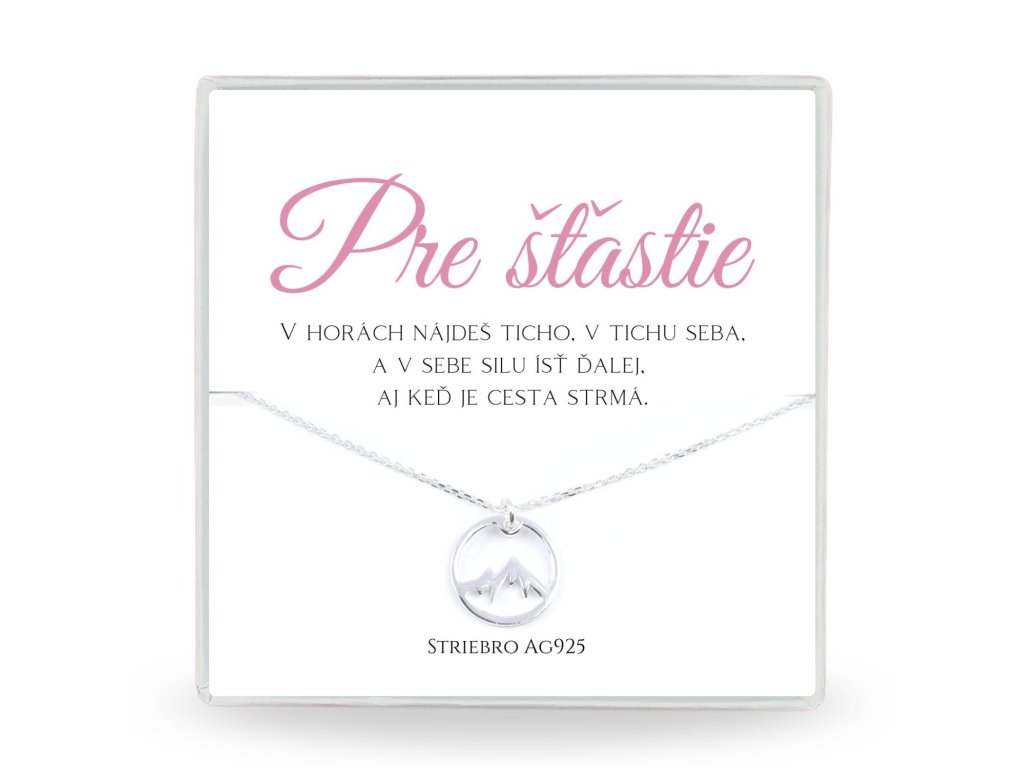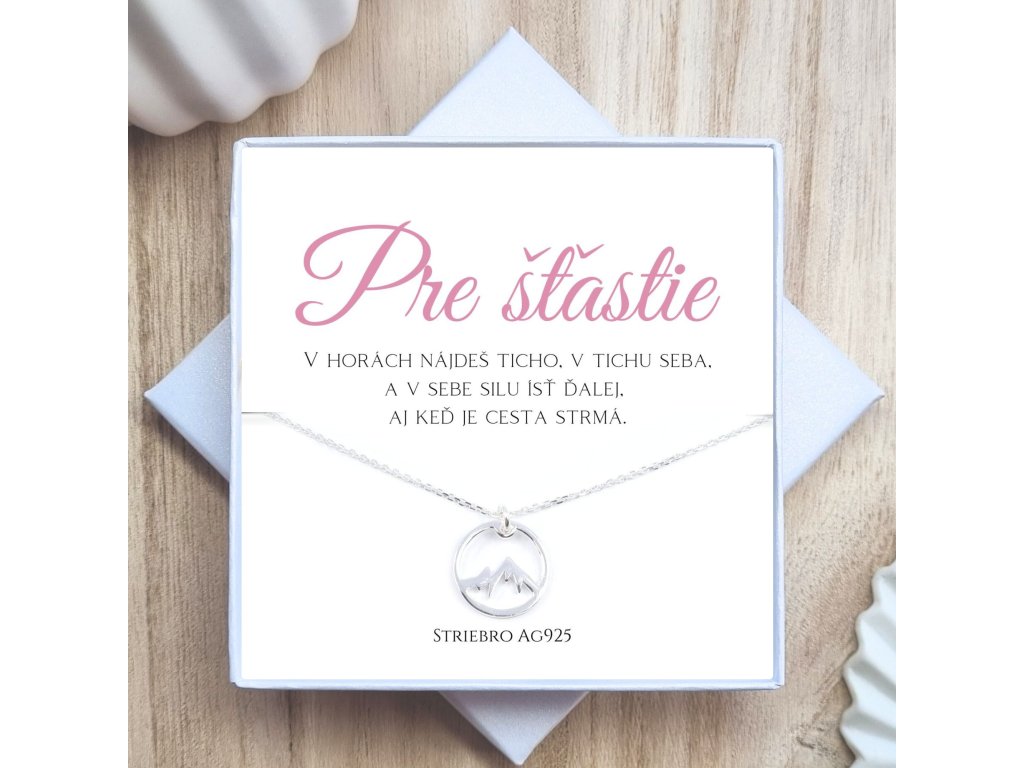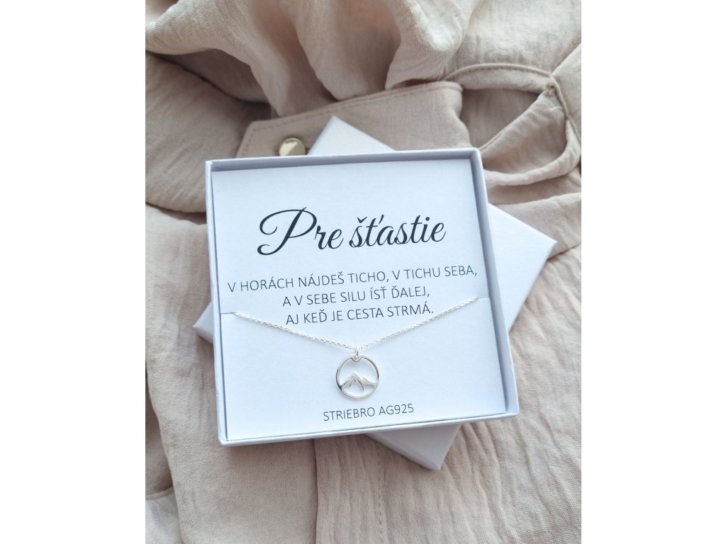 Strieborná retiazka s príveskom hory v darčekovej krabičke s venovaním a citátom na želanie