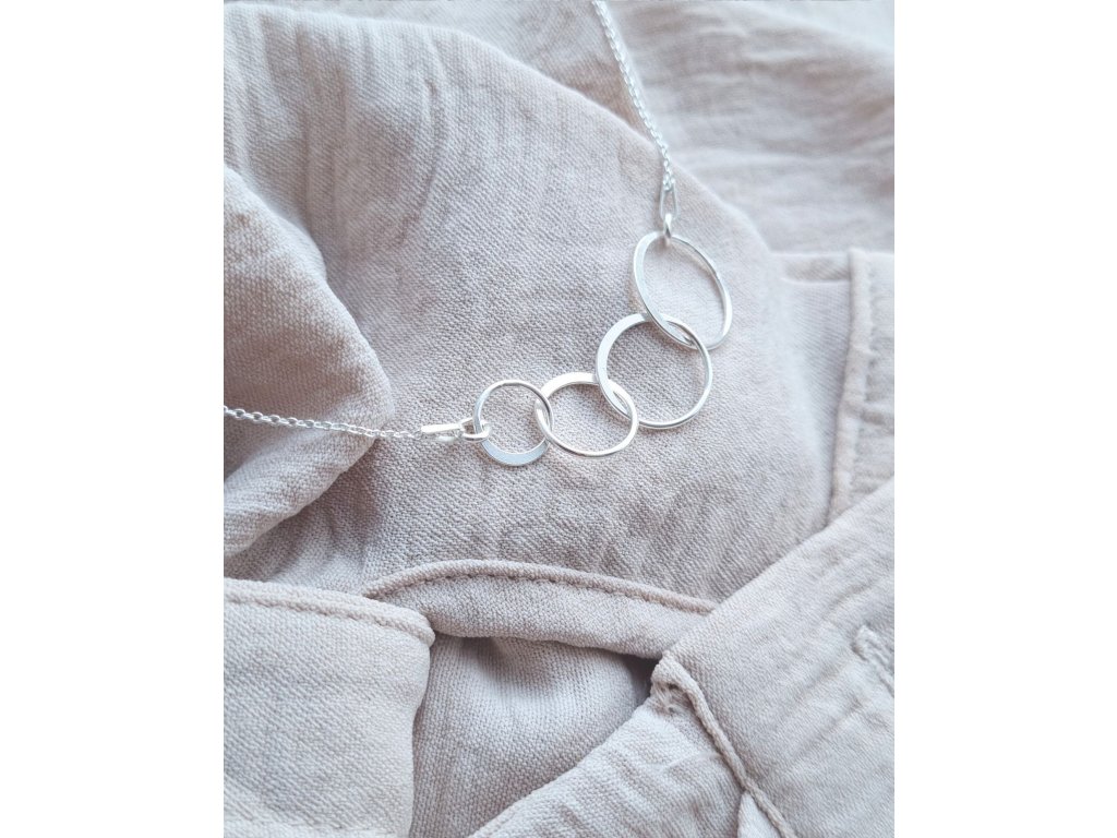 táto strieborná retiazka s príveskom zo štyroch prepojených kruhov nesie hlboký význam vzťahov, ktoré sú navždy spojené. Každý kruh predstavuje dôležitú osobu, fázu života alebo hodnotu, ktorú si nesiete so sebou.