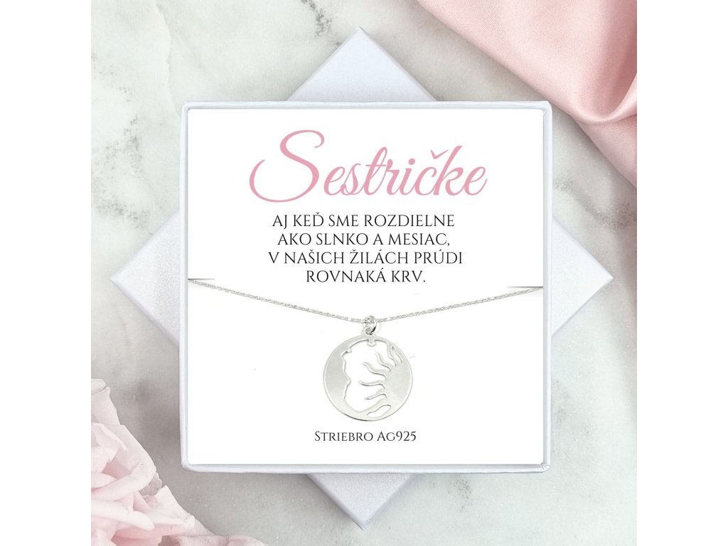 Táto strieborná retiazka s príveskom slnka a mesiaca je symbolom sesterského puta, ktoré pretrváva bez ohľadu na vzdialenosť, povahy či životné cesty.