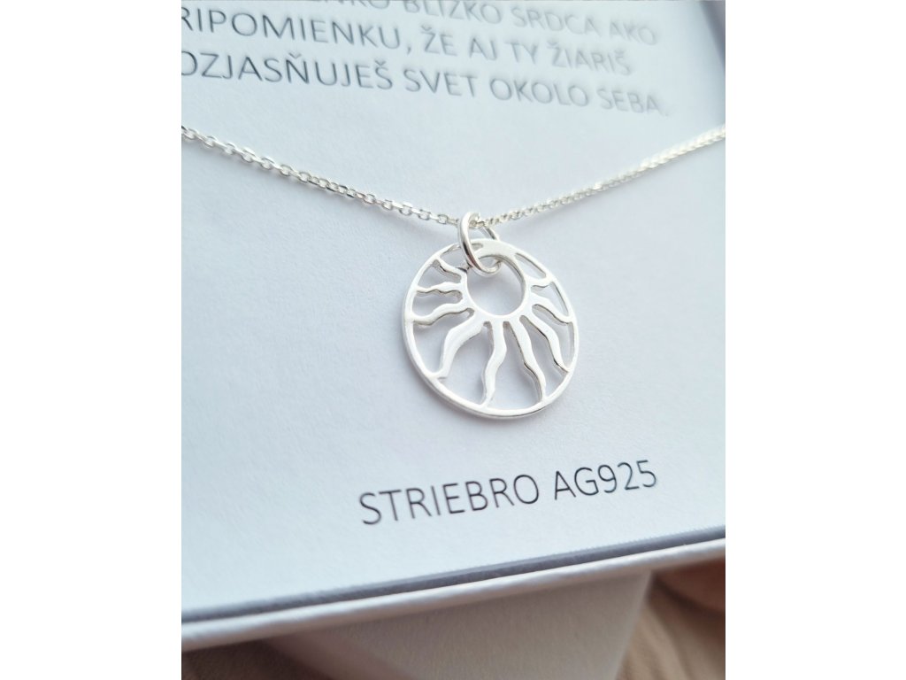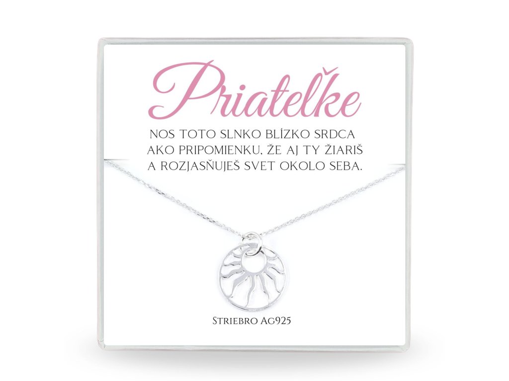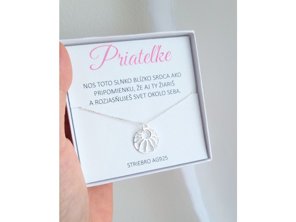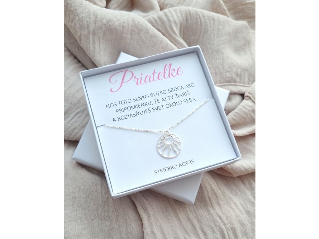 Strieborná retiazka s príveskom zapadajúceho slnka v darčekovej krabičke s venovaním a citátom na želanie