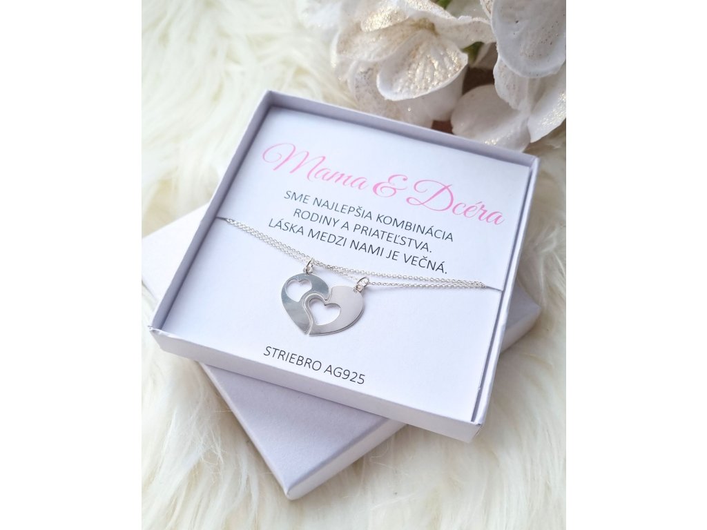 Krásne ligotavé strieborné retiazky s príveskom, ktorý zaručene poteší. Prívesok tvorí rozpolené srdiečko,