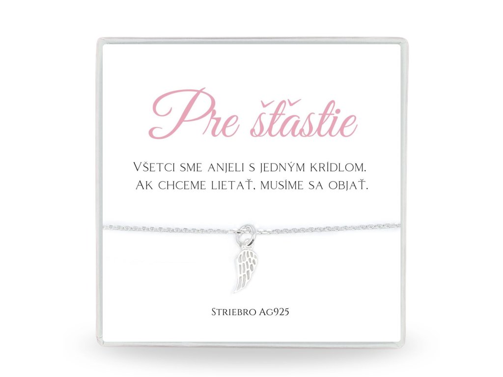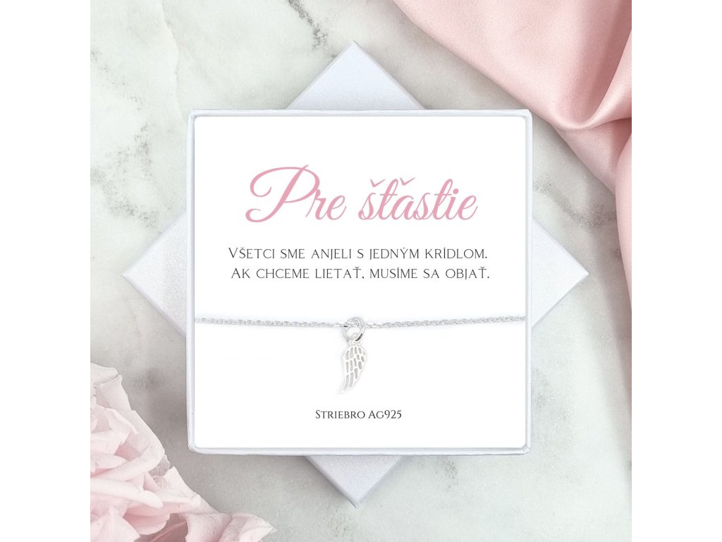 Strieborný retiazkový náramok s príveskom anjelského krídla v darčekovej krabičke s venovaním a citátom na želanie