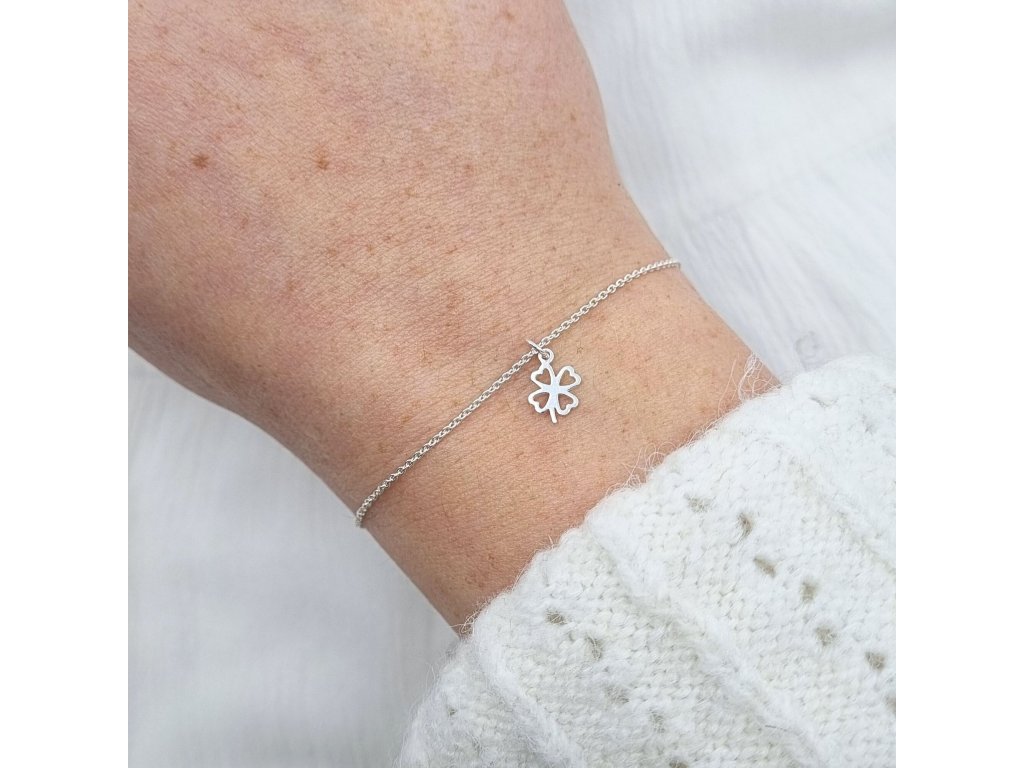 Strieborný retiazkový náramok so štvorlístkom – osobný talizman pre šťastie