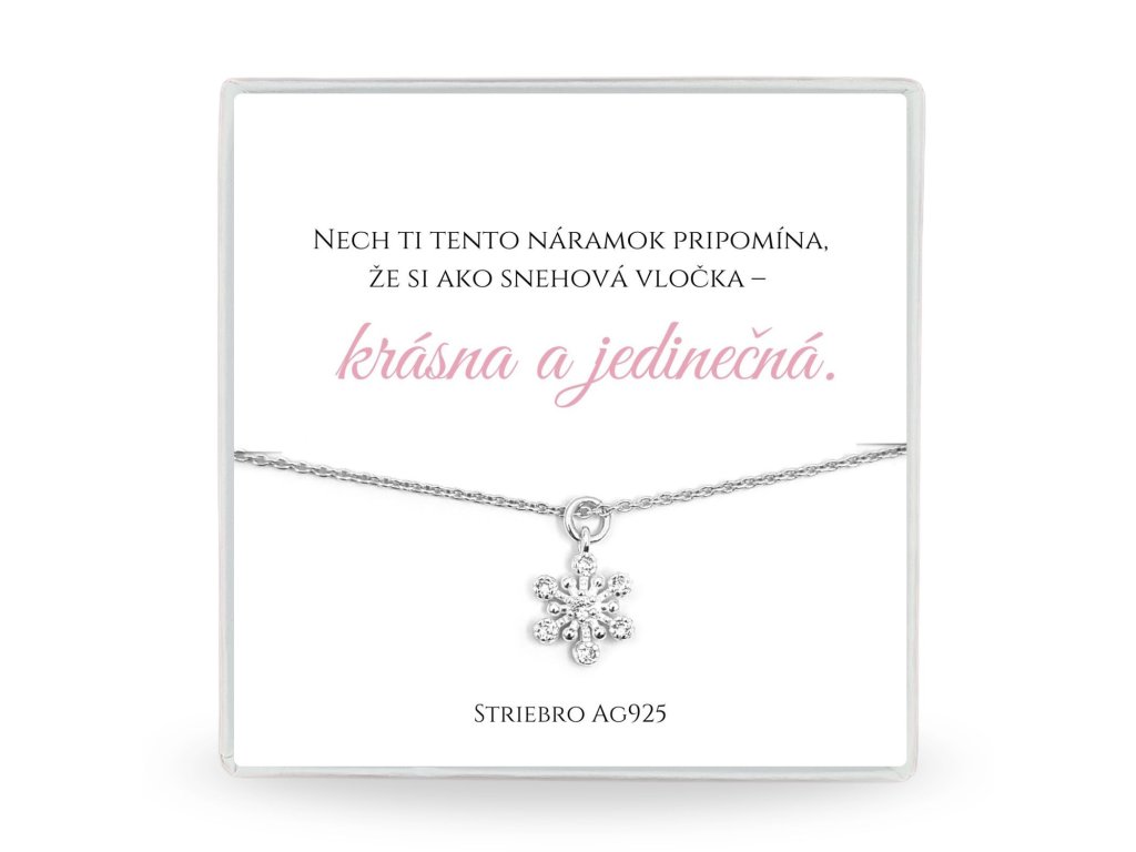 Nechajte sa očariť jemnou krásou zimy s naším elegantným strieborným náramkom, zdobeným precízne vyrezávanou snehovou vločkou. Každá vločka je jedinečná, rovnako ako chvíle, ktoré robia život výnimočným. Tento náramok je ideálny ako darček pre kamarátku, sestru alebo milovanú osobu – symbolizuje jedinečnosť, nežnosť a krásu priateľstva.