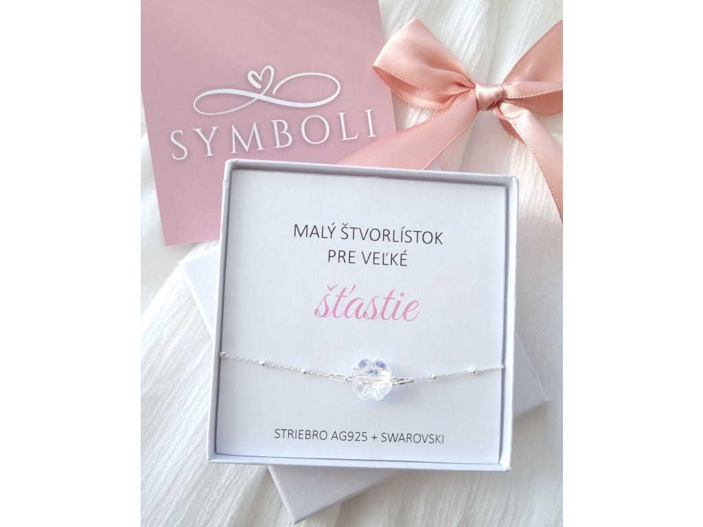 - vyrobený z pravého striebra Ag925 a originál Swarovski štvorlístka 8mm vo farbe Crystal AB